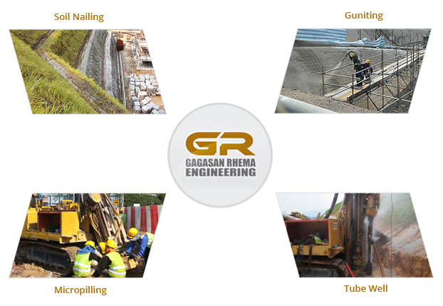 Associated with Gagasan Teguh Sdn Bhd, a soil investigation company established since 1991, Gagasan Rhema Engineering offers a wider range of related but specialized scope of services such as Soil Nailing, Guniting, Micropilling, Tube Well Installation and other Geotechnical related works.